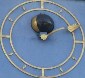 La boule dorée et noire d’un diamètre 23cm au dessus du XII montre les phases de la lune.