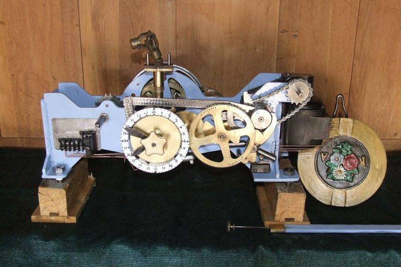La conception de cette horloge n’est pas du tout la même que celle des anciens fabricants. La mécanique de série risque de jouer de mauvais tours au remontage, vu la similitude des diamètres d’axes, de denture, etc. Un relevé précis de toute ces pièces imbriquées les unes dans les autres a été nécessaire pour le remontage.