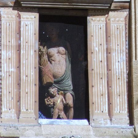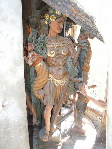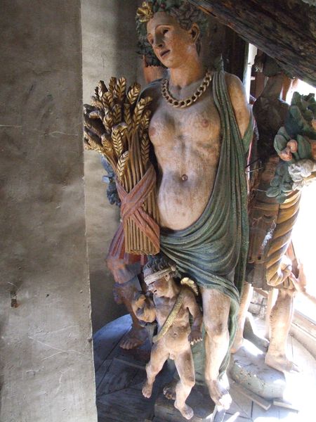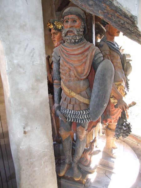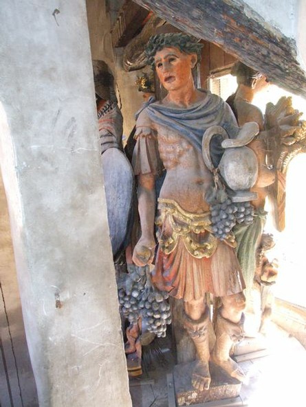 Un grand plateau de bois tournant, supportant les quatre merveilleuses statues, fait face à une ouverture dans le mur et montre face à la place, le cycle des saisons.