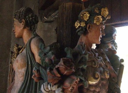 En 1738, le mécanisme d’horlogeriefut réparé, puis transformé à la fin du XVIIIè siècle. C’est probablement à cette époque que furent récupérées 4 des 7 statues de noyer pour créer la plateforme des 4 saisons actuelles :