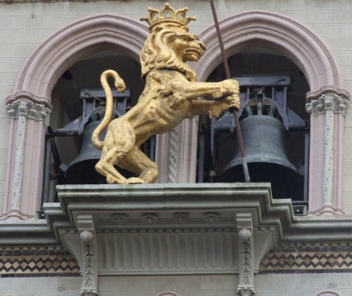 L’hôtel de ville est flanqué de deux tours majestueuses de 66 m et 63 m.