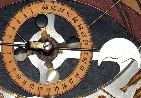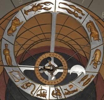 Le système de ligne de peinture dans son ensemble est une image projetée du globe du ciel qui sont transférés sur un plan. Trois pointeurs de la carte représentent le soleil, la lune et les étoiles que nous voyons en mouvement autour du point de centre du cadran en même temps que le soleil, la lune et les étoiles tournent autour de la terre.
