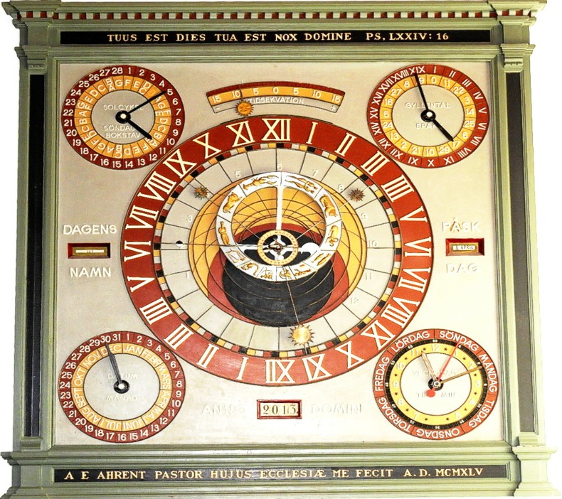 L'horloge a été réalisée en 1945 par Emil Ahrent qui y était prêtre jusqu'en 1959.