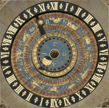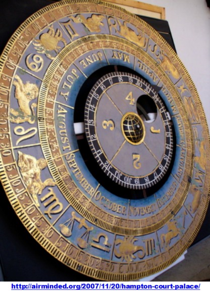 C’était l’époque de Ptolémée, la terre était le centre et l’univers tournait autour, le cadran est conçu de ce principe.