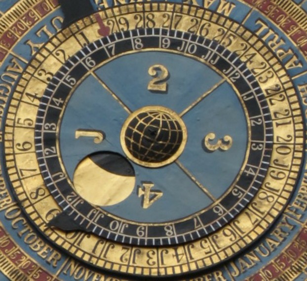 Le bord du disque est divisé en 29 jours ½ subdivisé en quarts et donne la période d’un mois synodique