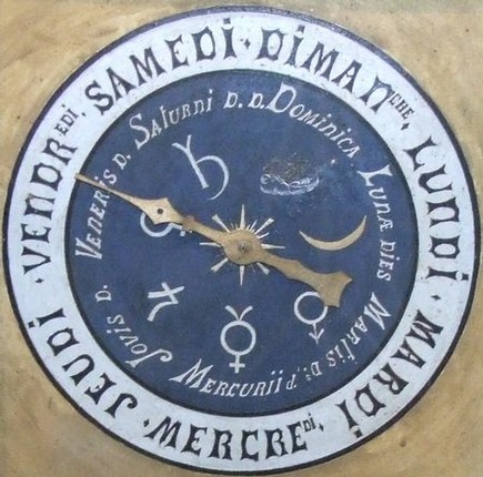 Lune=lundi, Mars= mardi, Mercure= mercredi, Jupiter=jeudi, Venus=vendredi, Saturne=samedi, Soleil=dimanche