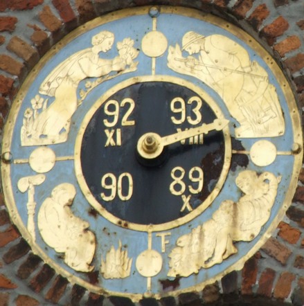 Cadran des heures en chiffres romains, Le IIII des fois s’écrit IV. Sur ce même site voir Strasbourg mairie, planétarium Cologne, Zug(ch),Bracken House, Ottery (GB)