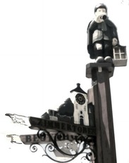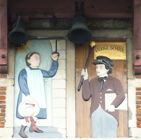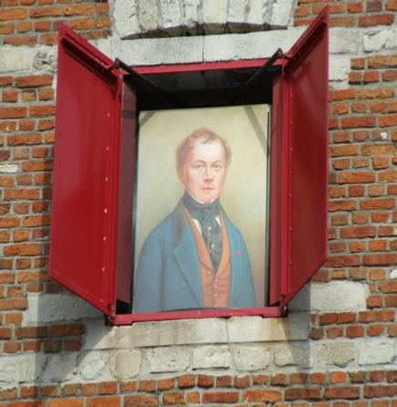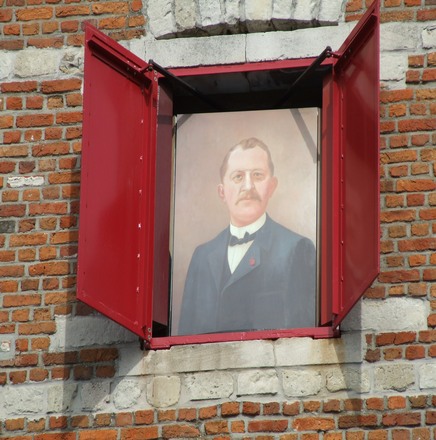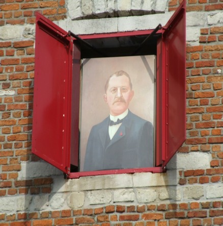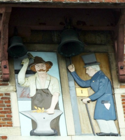 Sous ces 4 personnages, la petite niche abrite le mécanisme qui, à midi, présente un défilé des portraits