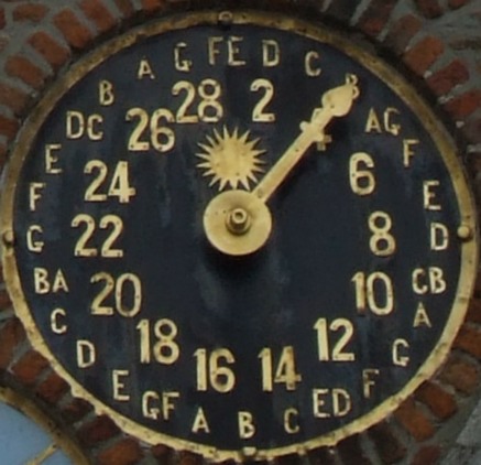 Le cercle solaire (cycle de 28 ans) ; les années bissextiles possèdent deux lettres et une seule pour les années courantes.