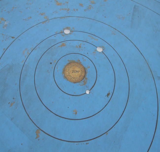 Une représentation du système solaire a été installée sur la petite place devant la tour,