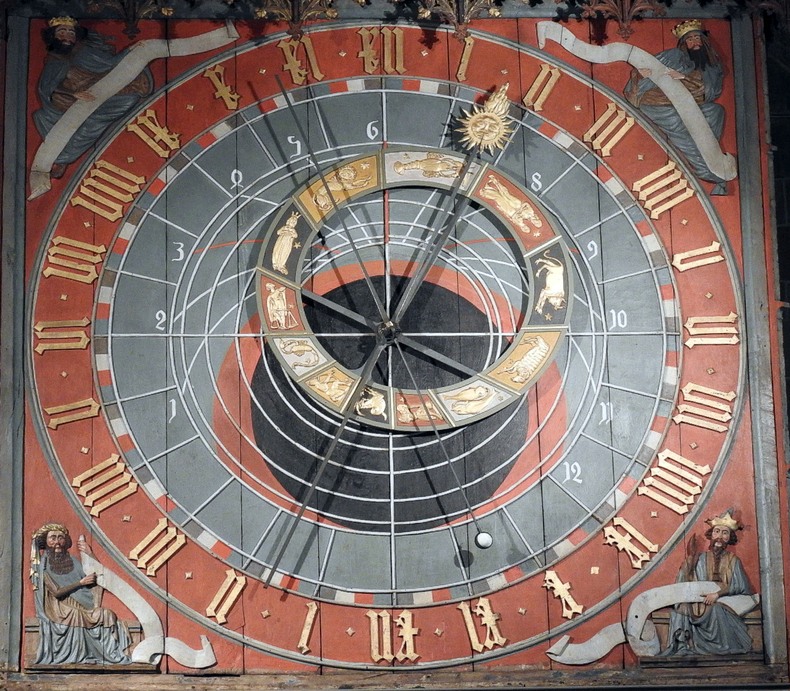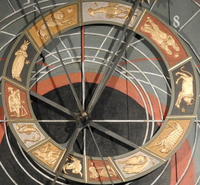 Elle indique les différents signes du zodiaque, les phases de la Lune. La partie supérieur décrit la trajectoire du soleil, de la lune et des planètes par rapport aux étoiles en relation avec les signes du zodiaque.