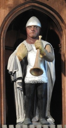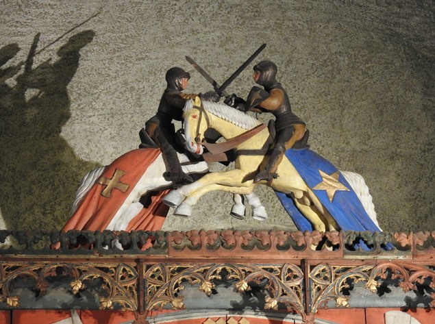 En haut de l'horloge, deux chevaliers qui marquent les heures.