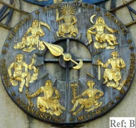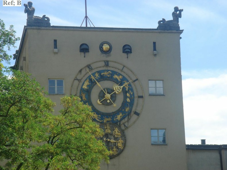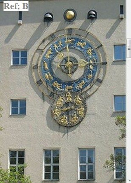Sur la façade de la Tour dans la cour du Deutsches Museum il y a une horloge astronomique.