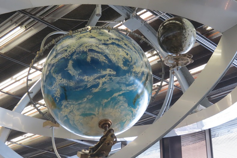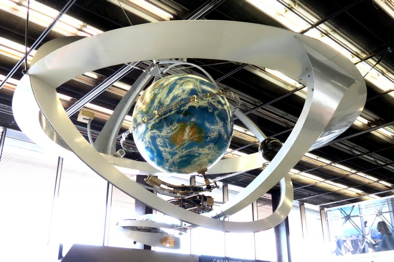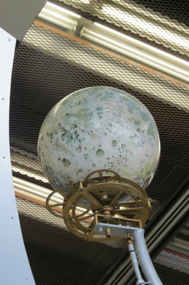 Largeur 6 m34, hauteur 4 m, poids 5000 kg, diamètre de la terre 1m82, de la lune 0.49