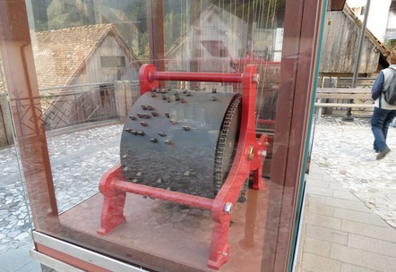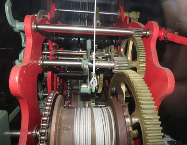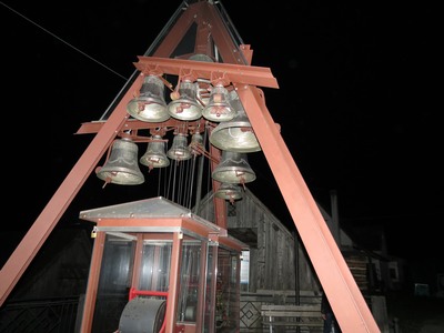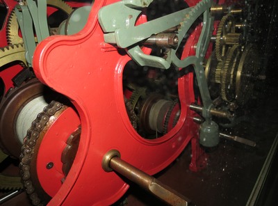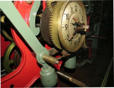 Le carillon est relié au tambour, mais ce sont des tinteurs électriques qui font sonner les cloches.