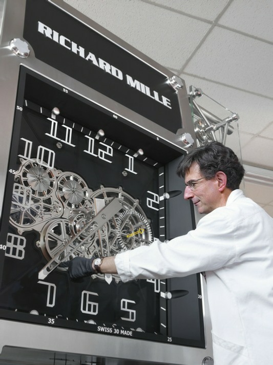 Cette horloge hors normes a été conçue et fabriquée selon les exigences de la très haute horlogerie, à l’image des montres Richard Mille, partenaire du projet.