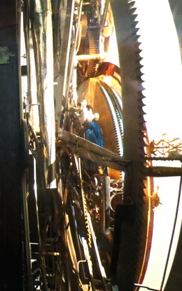 On aperçoit à travers les lucarnes la complexité des mécanismes