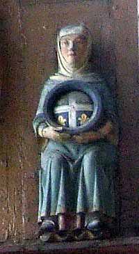 Au-dessus du cadran, une femme avec un lys et une autre femme tenant Jésus enfant sur ses genoux.