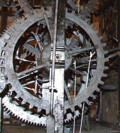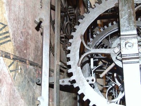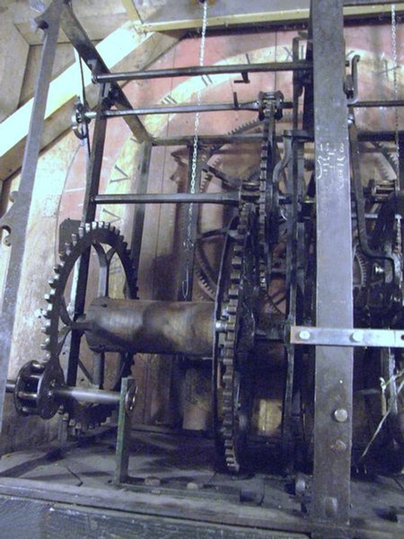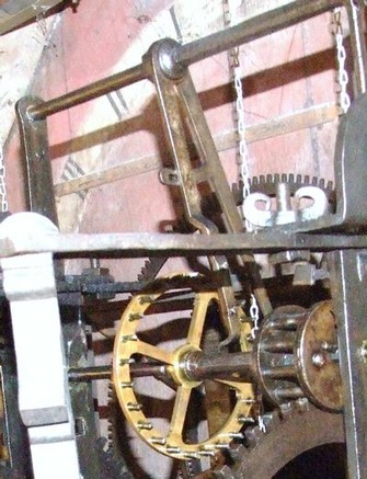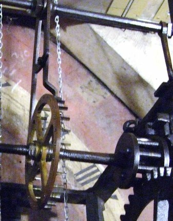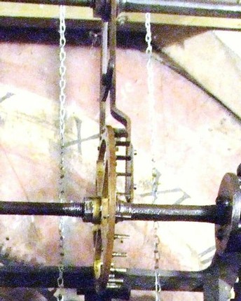 Les demies sont sonnées sur la même cloche par une autre mécanique. Les quarts sont sonnés sur une autre cloche.