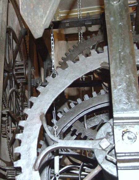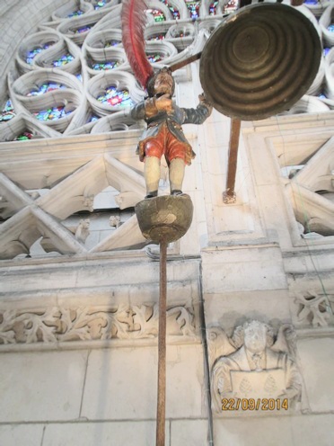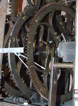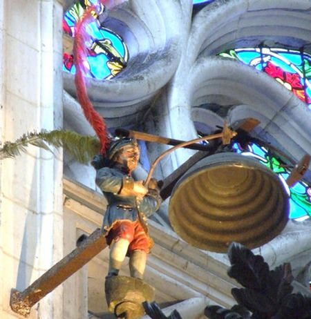 Le Jacquemart aujourd’hui inutile à l’horloge, mais qui n’a jamais fait partie réellement de l’horloge, et qui demande trop de force pour sonner les heures.
