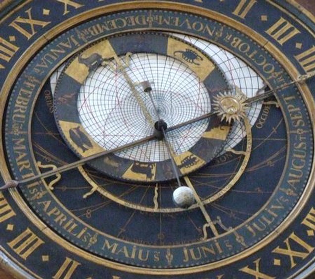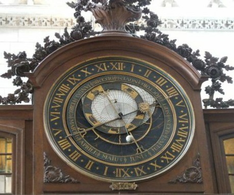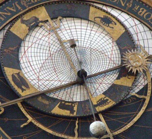 C’est aussi une horloge astrologique: l’aiguille de l’heure donne le signe en cours par sa superposition avec le cadran du zodiaque.