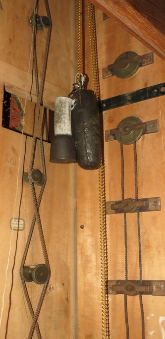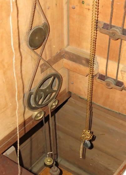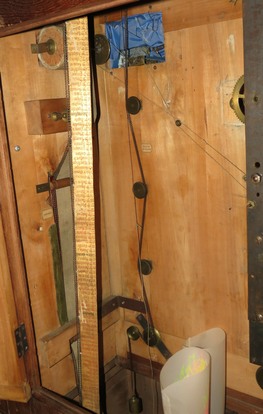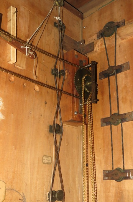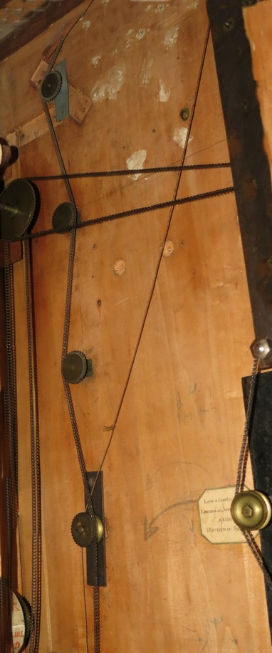L’ensemble des mécanismes est disposé dans le buffet intérieur et relié par de chaînes