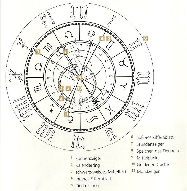 Les organes du cadran l’horloge astronomique datent de Isaac Abrecht en 1580, excepté l’aiguille lunaire qui, elle, est de 1905 comme le mécanisme.