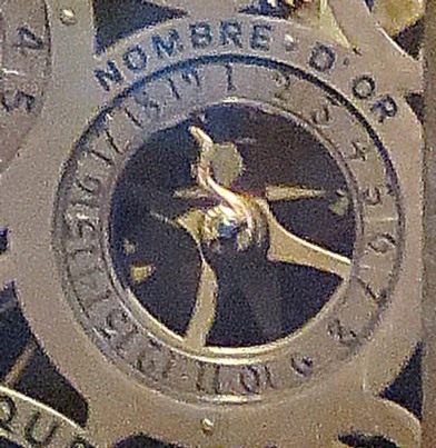 Par manque de documentation, les explications données ici sont lues directement sur les cadrans ; toutes les complications ne sont pas visibles