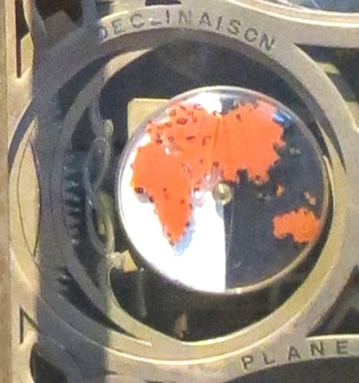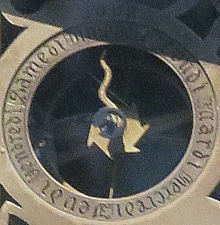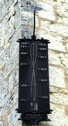 Cette méridiene avec son 8 allongé permet au fil des mois de régler l’horloge au midi juste. (Aiguille variable, dessin fixe)