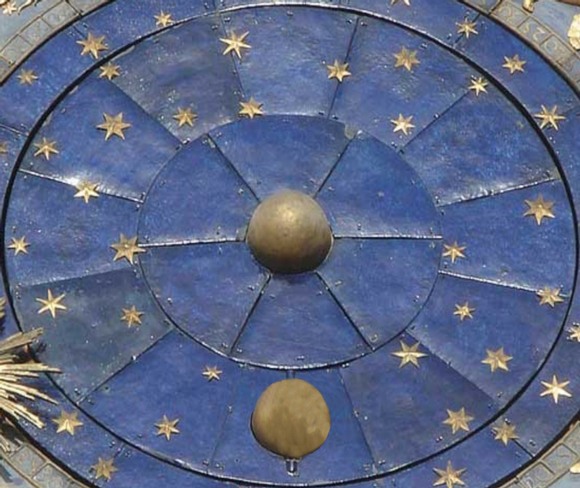 L'aiguille des heures semble faire corps avec le cadran des zodiaques, en fait celui-ci va un peut plus vite, ce qui fait que l’aiguille des heures met un an à chevaucher chaque signe du zodiaque sur ce cadran.