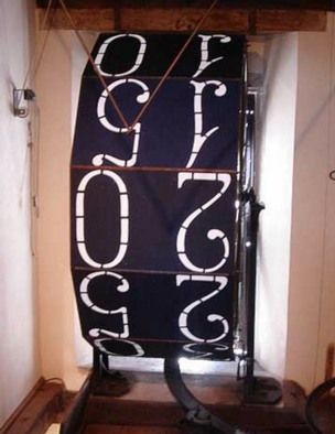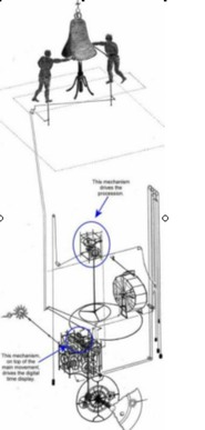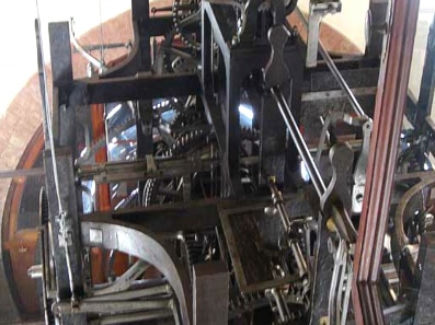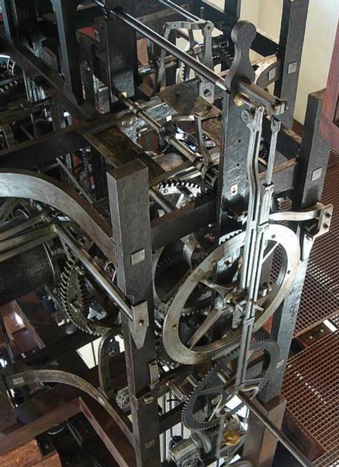 C’est à l’étage au-dessus du régulateur que l’on peut voir de l’intérieur le mécanisme avec l’indication numérique des heures et des minutes(1858) .