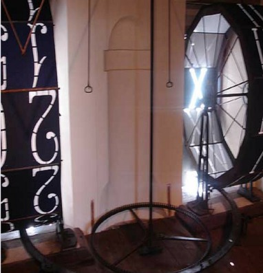 Le pendule de l’horloge fait 30 oscillations par minute et possède un échappement à chevilles datant de 1858 ; le remontage des poids a été motorisé.