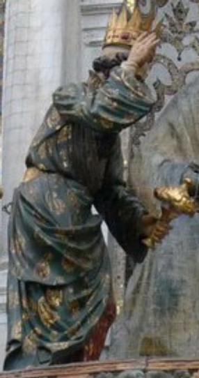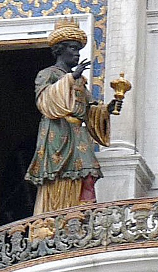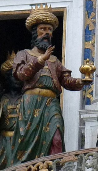 Au second étage, dans une niche spéciale, il y a la Vierge tenant l'Enfant assise entre deux portes. Entre la fête de l'Ascension et la Pentecôte on voit journellement, lorsque sonnent les heures et les demies, sortir par une portes les Rois Mages, en bois, richement habillés, précédés d'un Ange avec sa trompette ; ils défilent devant la statue de la vierge s'inclinent en signe de révérence et rentrent par l'autre porte.