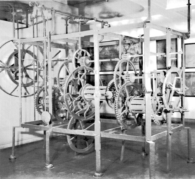 Le régulateur, au milieu, est une roue de 88 cm et 120 dents ; il faisait un tour en une heure.