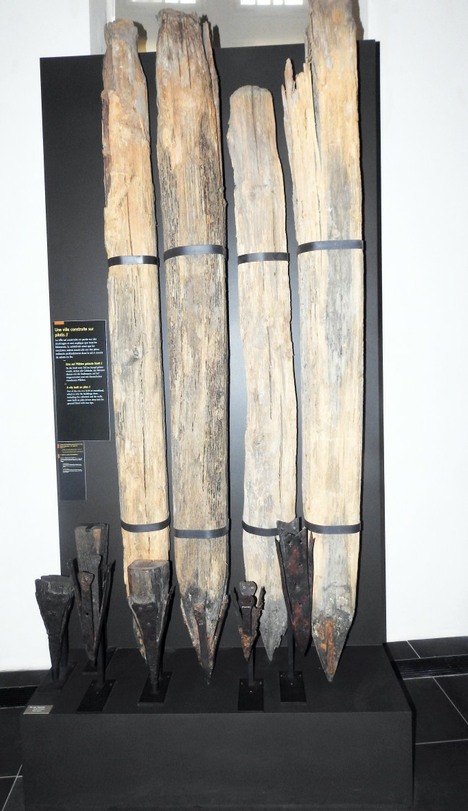 sur des pieux profondément enfouis dans le sol et munis de sabots de fer