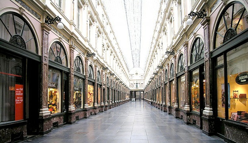 La Galerie de la Reine reçoit six millions de visiteurs et touristes par an : un lieu de promenade et de shopping. La verrière protège les promeneurs des intempéries.