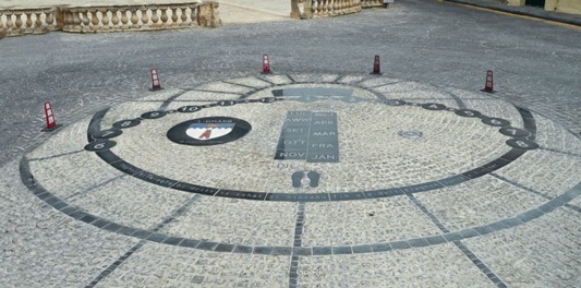 Cadrans solaire au sol, devenez gnomon, posez les pieds aux emplacements prévus.