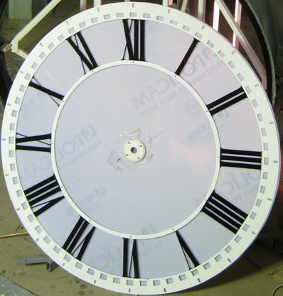 Décoration : tôle peinte de 0.37mm - Chiffres romain de 1 mm.