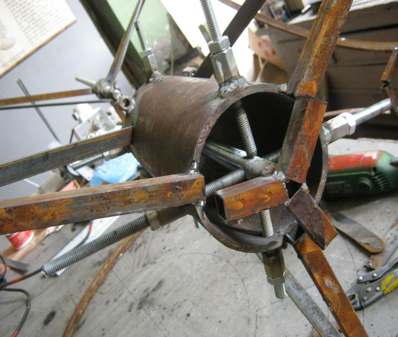 Mat de l’horloge : socle, renforts et base percée en acier.