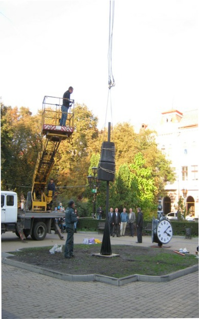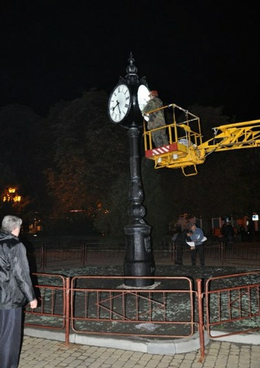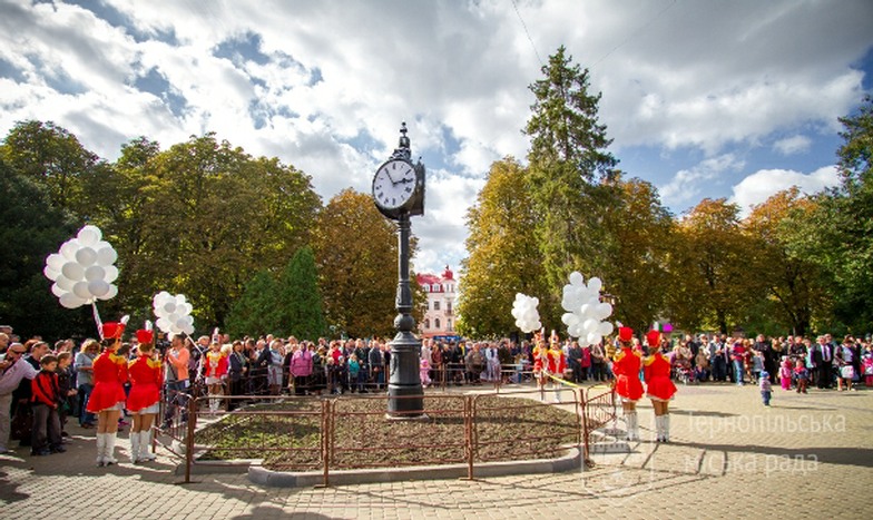 Monsieur Serge Nadal, maire de Ternopil, ayant remarqué chez un collectionneur cette carte postale qui représente une ancienne horloge trois faces de sa ville, s’est donné pour mission de la faire reconstruire.