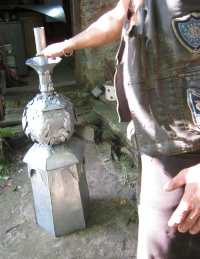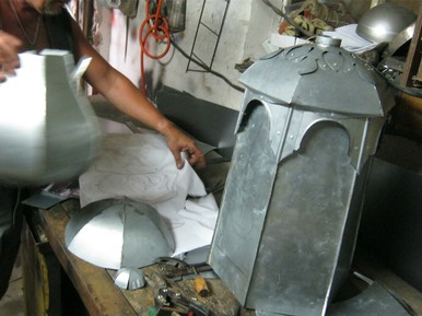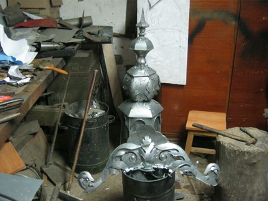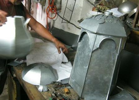 tout comme nos anciens ferblantiers travail la feuille de métal, la repousse, la sculpte comme de la dentelle.