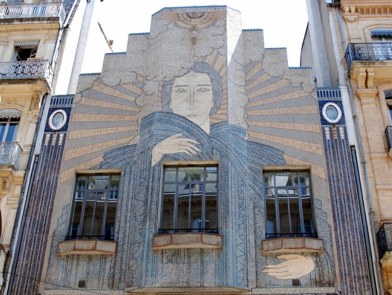 L’ancien siège social du journal « La Dépêche » avec sa façade Art Déco a une superbe mosaïque figurative réalisée par les céramistes Gentil et Bourdet en collaboration avec Léon Jaussely, année 1925.