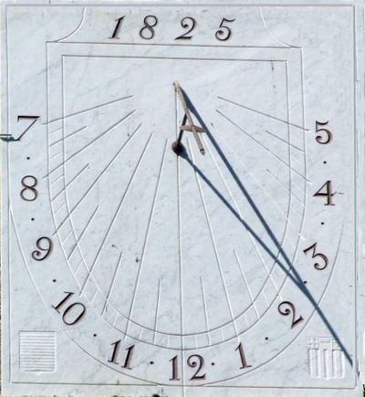 Un cadran solaire méridional, gravé sur marbre style avec jambe et œilleton daté 1825.