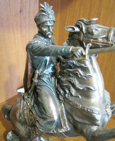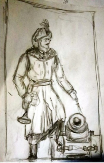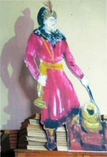Pour ajouter une valeur historique à ce tableau et après consultation du comité d’histoire de la ville, il a été choisi un personnage « guerrier habillé »