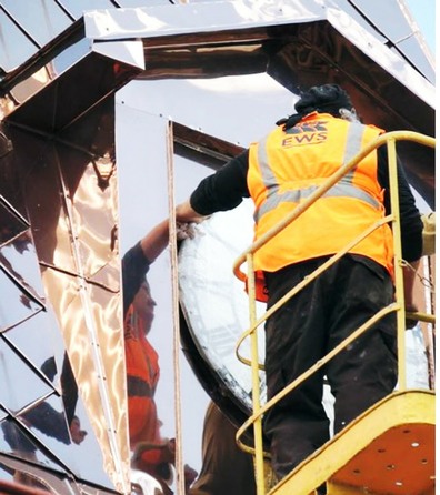 Pose de la découpe en position réelle pour être vue de la place.