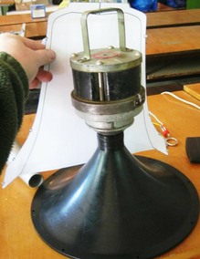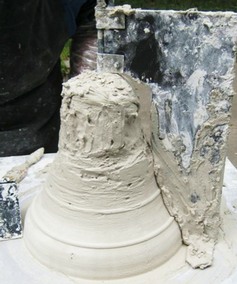 Le moule de la cloche, le haut parleur, la cloche terminée.