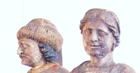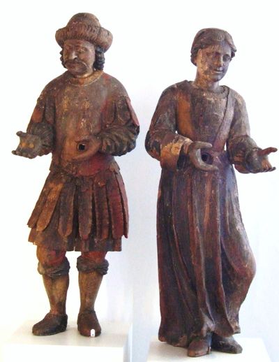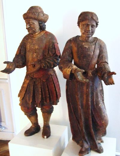 Les originaux sont du XVIè siècles sont sculptés en bois peint, polychromes, et sont habillés de costumes villageois.