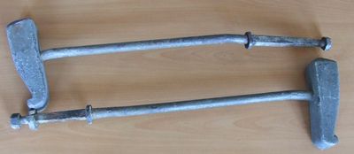 L’action des siècles les ayant détériorés, ces sculptures, hautes d'environ 1m30, ont étés rénovés en 1960 par Bernard Archer, et ont fière allure dressée sur leurs socles.