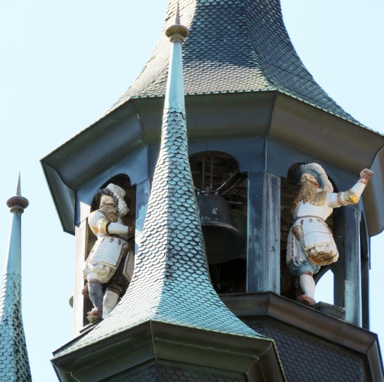deux jacquemarts qui sonnent les quarts et les heures.