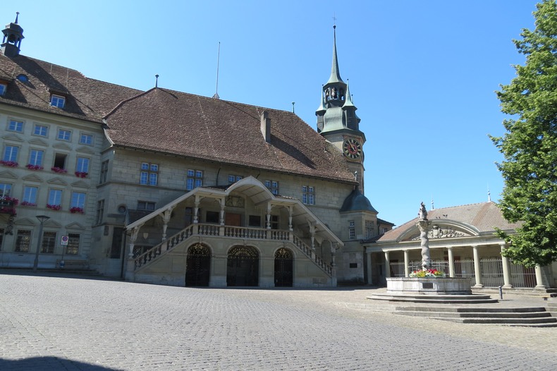 L’hôtel de ville de style gothique tardif a été construit sur l'ancienne forteresse des Zähringen,